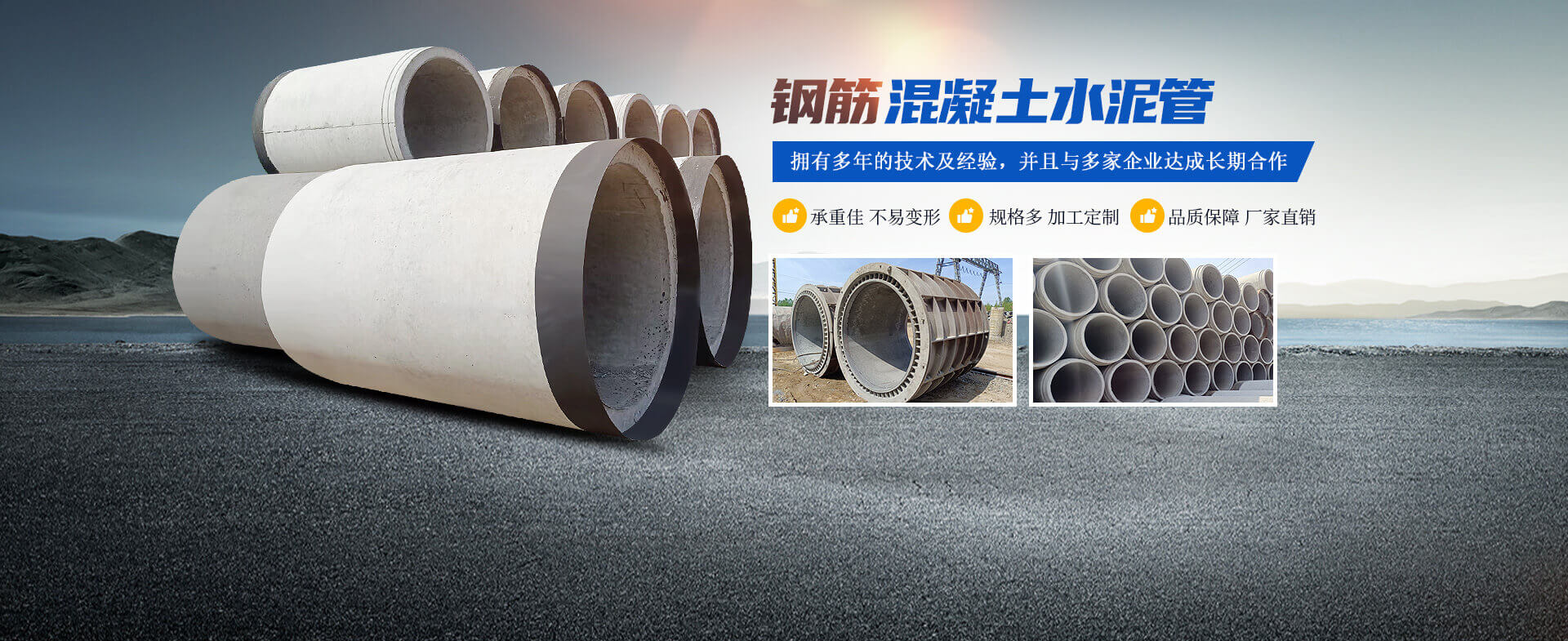 洛陽運曌建筑材料有限公司專于從事水泥制品開發、制作、生產、銷售、工程服務為一體的綜合性企業。主要生產鋼筋混凝土排水管、鋼承口頂管、承插管、平口管、雨污井蓋、路沿石、水泥預制板、仿木圍欄護欄系列、畜牧系列等混凝土水泥預制品?! ∥夜旧a的鋼筋混凝土排水管是依據執行標準GB/T11836-2023生產檢驗、擁有三條懸輥工藝生產線;型號300-3000;年生產能力達30000米左右,質量是企業之本.........了解更多>>
